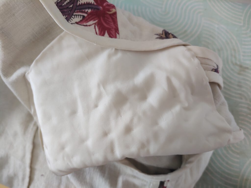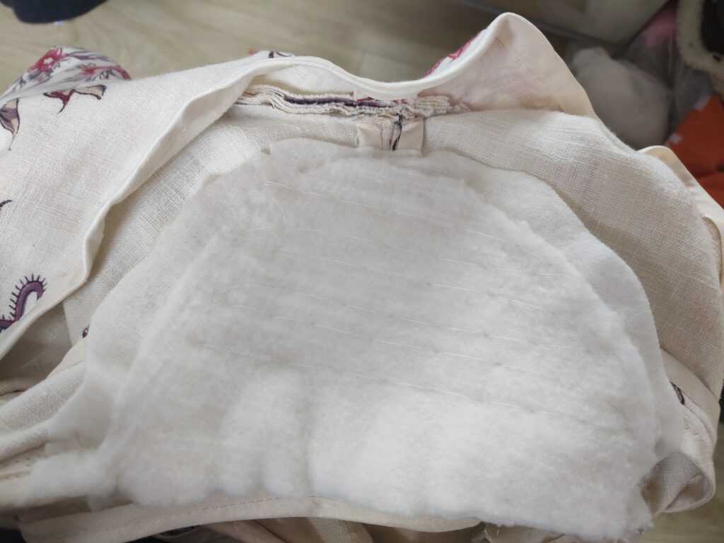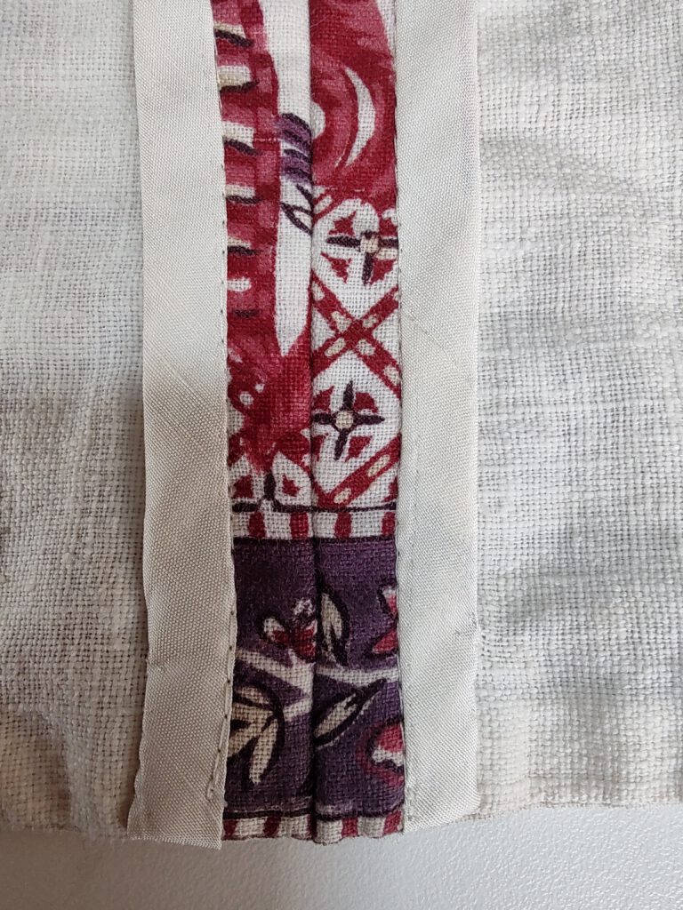 De rok was een dubbele stof de binnenkant, nu de binnenkant van dit jasje was met onzichtbare steekjes tegen de buitenkant vastgezet. En de onderkant was dus zoals nu de zoom van mijn jasje en onderkant van de mouwen.