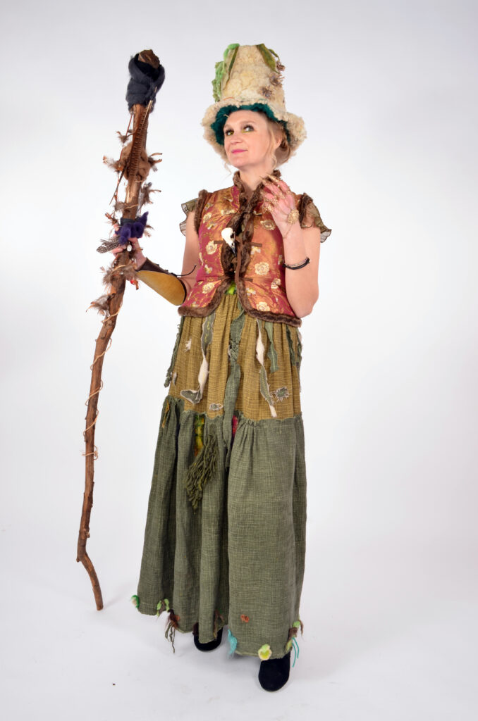 De hoed heb ik ook zelf gemaakt van wolvilt, gedroogde bloemen en mijn 3d printer.
